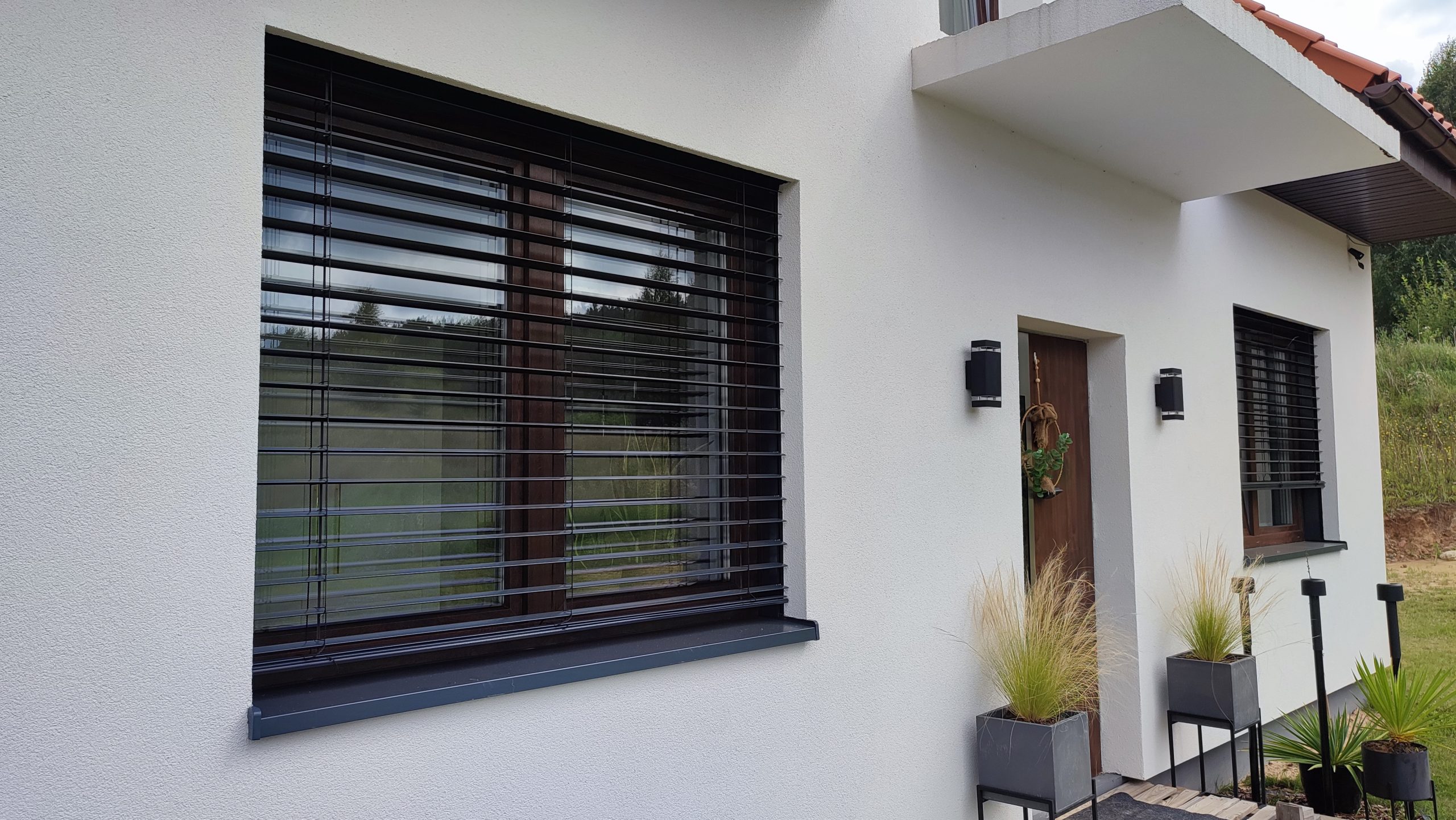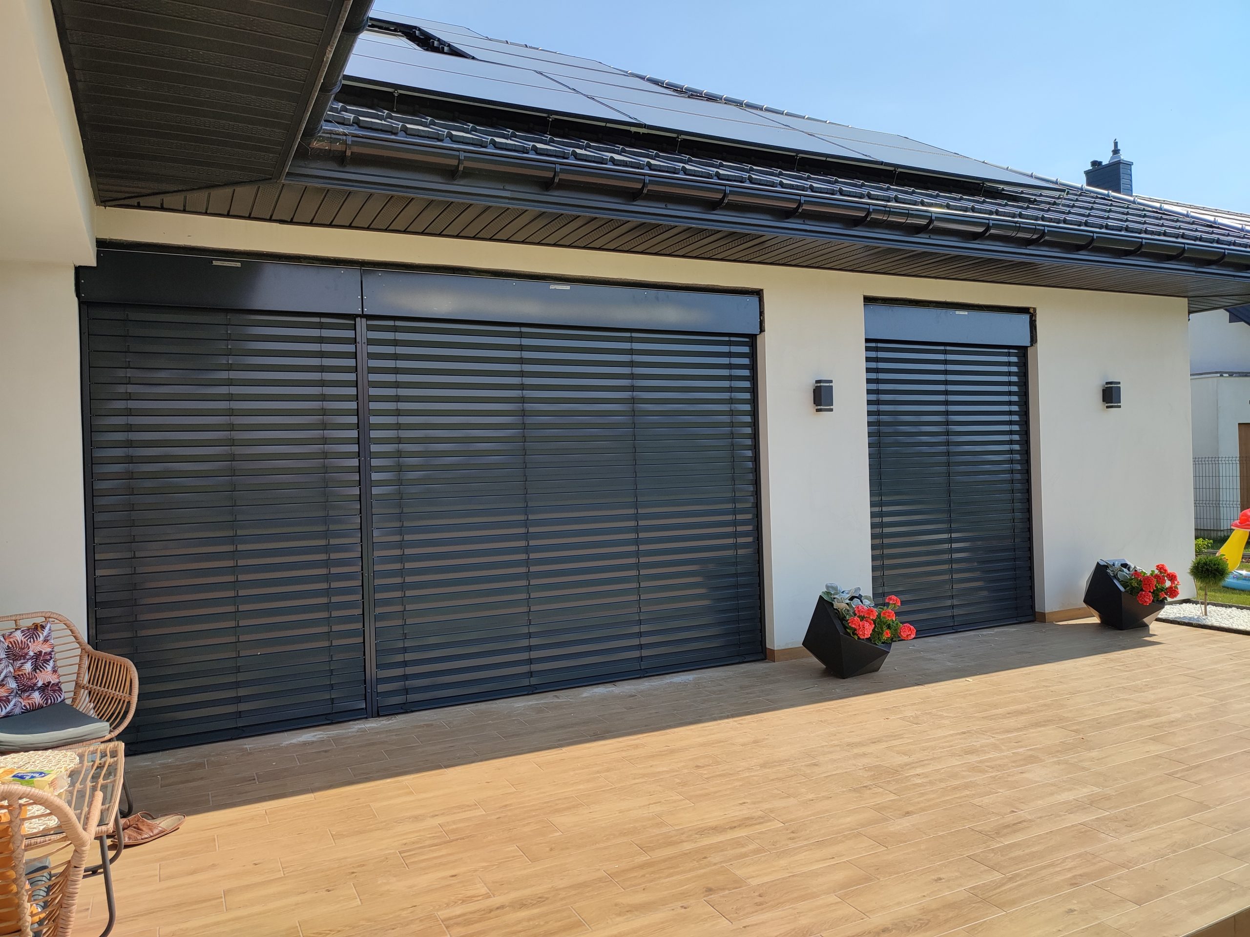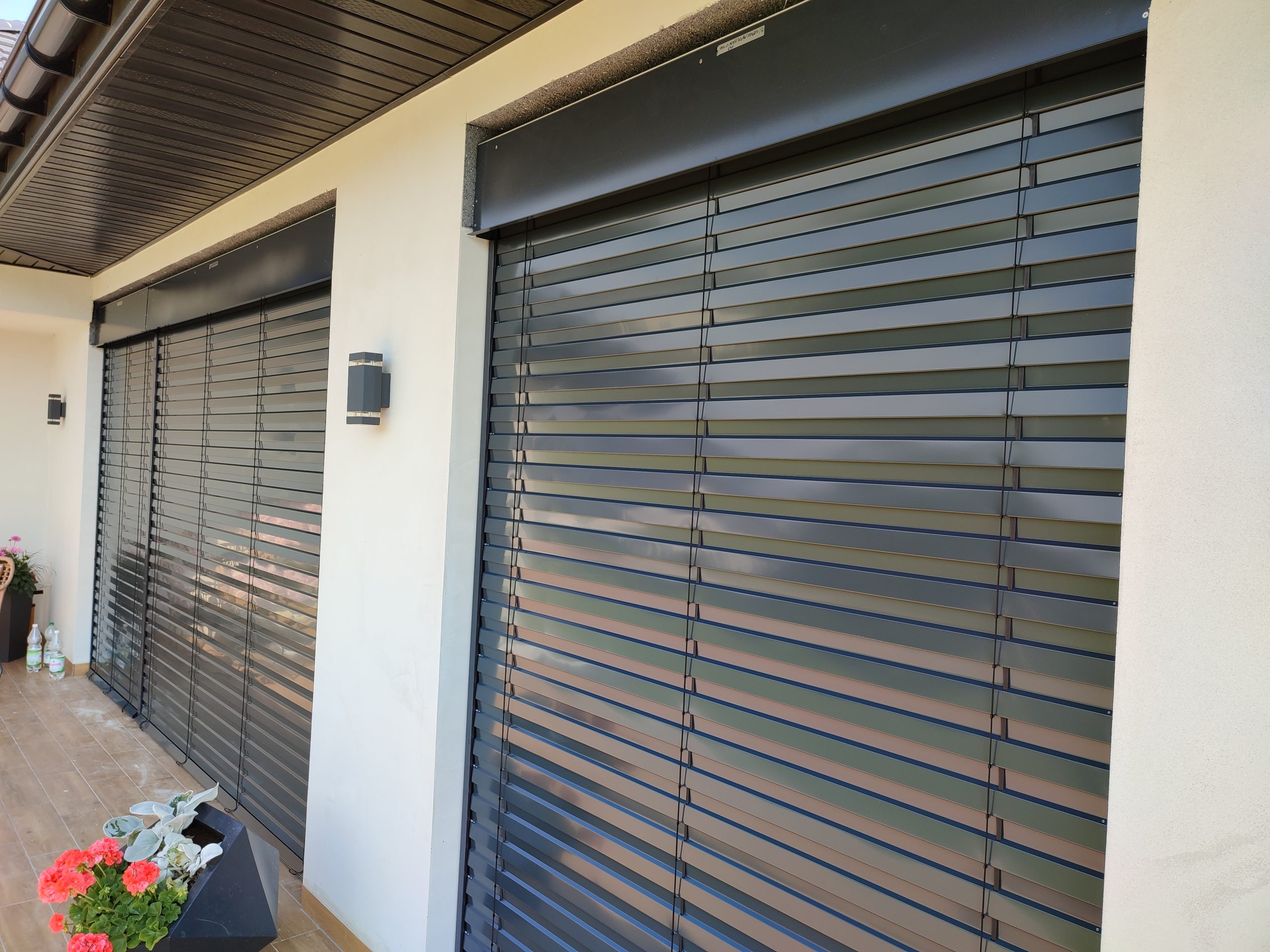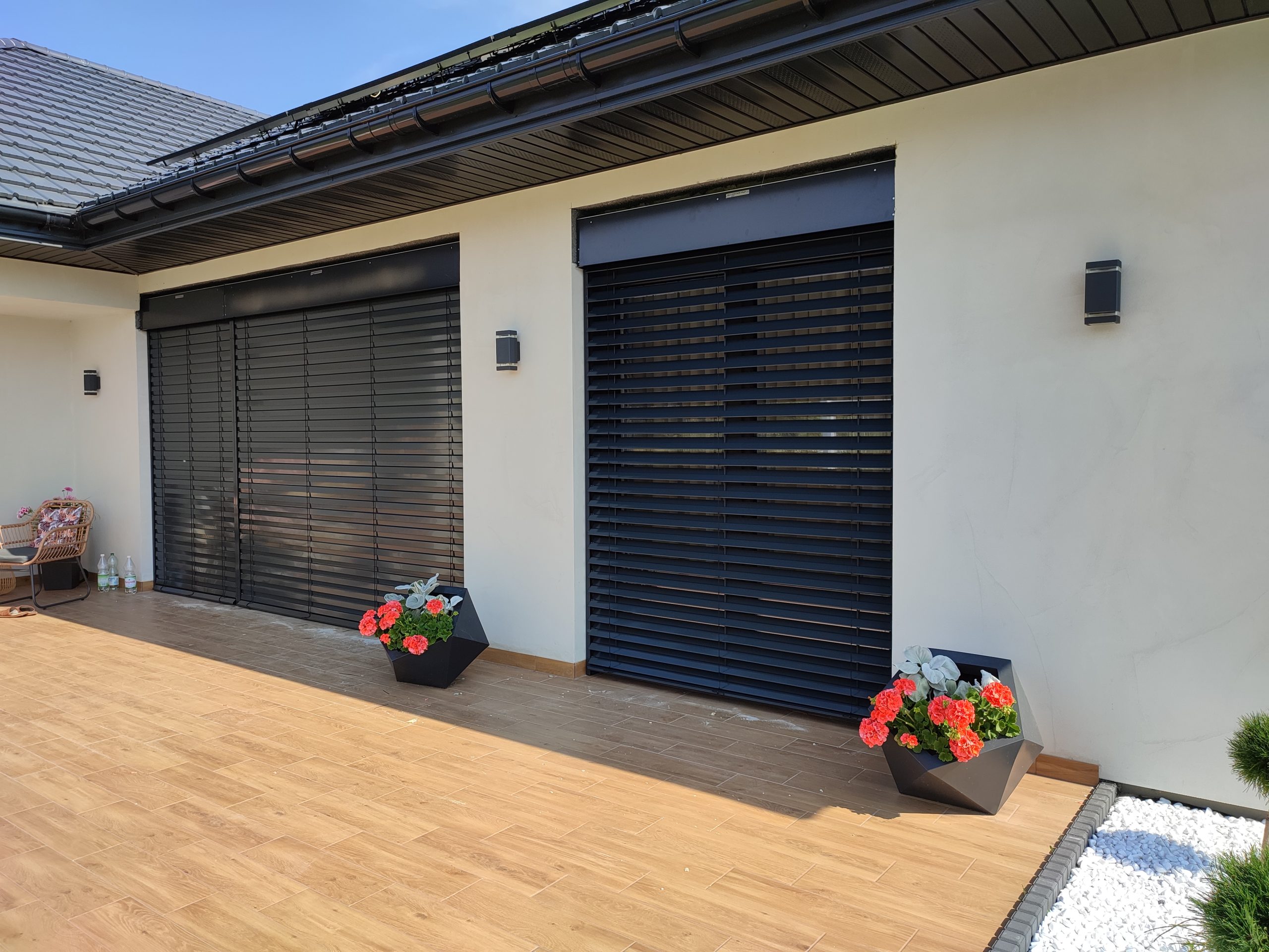 Żaluzje fasadowe to nowoczesne osłony zewnętrzne, które dają możliwość precyzyjnego dozowania światła w pomieszczeniach. Przy dużym nasłonecznieniu pozwalają ochronić szyby przed przegrzaniem i dzięki temu obniżają temperaturę wewnątrz pomieszczeń. Wygodne sterowanie elektryczne z możliwością programowania czasu pracy żaluzji oraz reagowaniu na warunki pogodowe zapewnia komfortową obsługę.